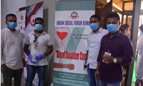 ക്യാംപില് പങ്കെടുത്ത മുഴുവന് ആളുകള്ക്കും കൊവിഡ് സുരക്ഷാക്രമീകരണം ഒരുക്കുകയും ചെയ്തിരുന്നു. ലോക്ക് ഡൗണ് സമയത്തും രക്തം ആവശ്യമായ നിരവധി രോഗികള്ക്ക് സോഷ്യല് ഫോറം രക്തദാനം ചെയ്തിരുന്നു. നൂറില്പരം ആളുകള് പങ്കെടുത്ത രക്തദാനക്യാംപിന് ജാബിരിയ ബ്ലഡ് ബാങ്കിലെ ഡോ. അസ്മ റാഫാത്തിനോടപ്പം ഇന്ത്യന് സോഷ്യല് ഫോറം വൈസ് പ്രസിഡന്റ് അസ് ലം, സെക്രട്ടറി സയ്യിദ് ബുഖാരി തങ്ങള്, ഖലീല്, മൊയ്തീന് കോയ, അസീം, മുഹമ്മദ് ഷാ, ശിഹാബ്, നൗഷാദ് എന്നിവര് എന്നിവരും നേതൃത്വം നല്കി.