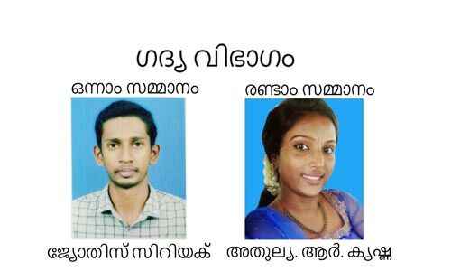 രണ്ട് വിഭാഗങ്ങളിലായി നടന്ന മല്സരങ്ങളില്: പദ്യവിഭാഗത്തില്, ഒന്നാം സമ്മാനമായ 15,000 രൂപയുടെ കാഷ് പ്രൈസിനും ട്രോഫിക്കും അതുല്യ ആര് കൃഷ്ണ അര്ഹയായി. രണ്ടാം സമ്മാനമായ ആയ 10,000 രൂപയുടെ കാഷ് പ്രൈസിനും ട്രോഫിക്കും കെ പി കൃഷ്ണപ്രിയയും അര്ഹയായി.