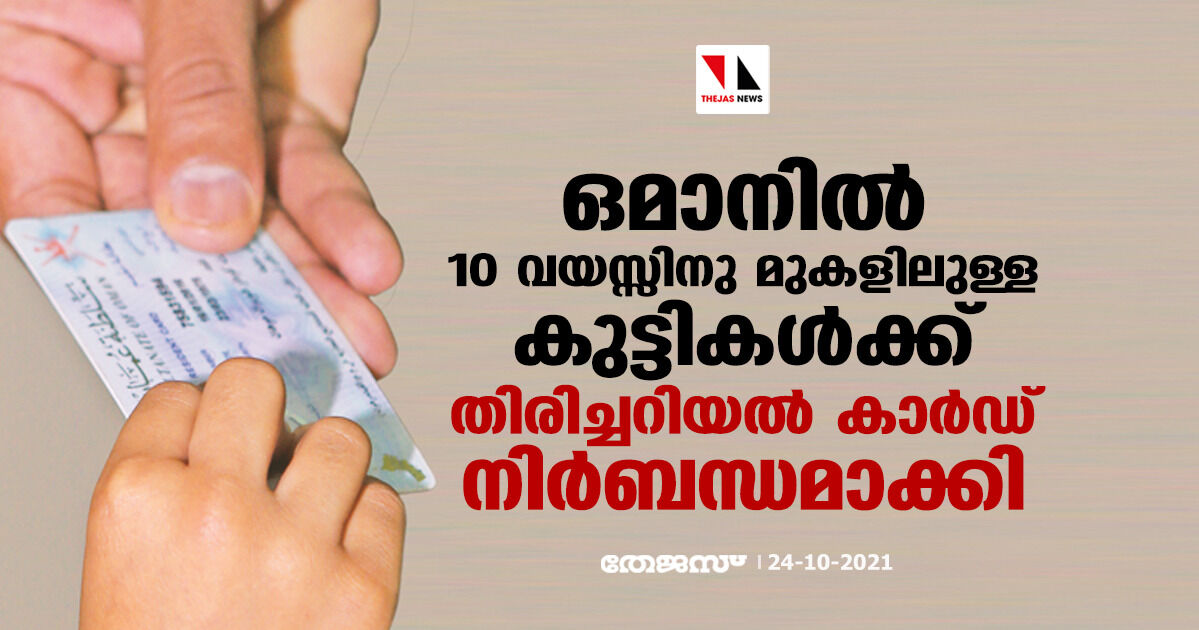ഒമാനിൽ 10 വയസ്സിനു മുകളിലുള്ള കുട്ടികൾക്ക് തിരിച്ചറിയൽ കാർഡ് നിർബന്ധമാക്കി