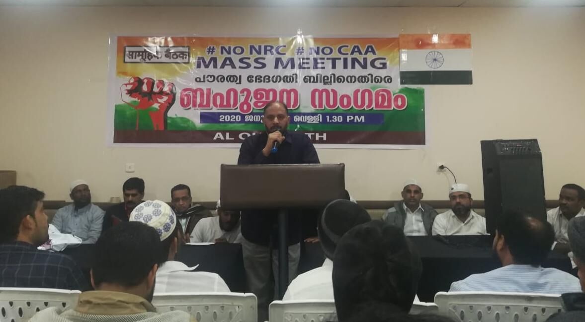 ഖുറയാത്ത്: (സൗദി അറേബ്യ) ഭരണഘടനാവിരുദ്ധമായ പൗരത്വ ഭേദഗതി നിയമത്തിനെതിരേ ഖുറയാത്തിലെ പ്രവാസ സംഘടനകള് ബഹുജന സംഗമം സംഘടിപ്പിച്ചു. പൗരത്വ ഭേദഗതി നിയമത്തിനെതിരേ രാജ്യവ്യാപകമായി ജനാധിപത്യ രീതിയില് നടത്തുന്ന പ്രതിഷേധങ്ങളെ പോലിസിനെയും പട്ടാളത്തെയും ഉപയോഗിച്ച് അടച്ചമര്ത്താനുള്ള ശ്രമങ്ങളെ യോഗം അപലപിച്ചു.