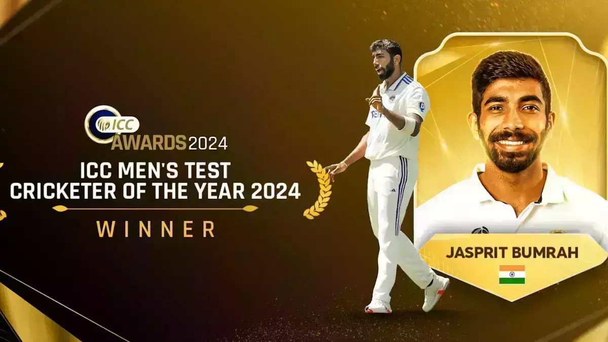 ശ്രീലങ്കയുടെ കമിന്ദു മെന്ഡിസ്, ഇംഗ്ലീഷ് ബാറ്റര്മാരായ ഹാരി ബ്രൂക്ക്, ജോ റൂട്ട് എന്നിവരെ മറികടന്നാണ് ബുംറ 2024-ലെ ഏറ്റവും മികച്ച ടെസ്റ്റ് താരമായത്. ടെസ്റ്റില് ഒരുവര്ഷം എഴുപതിലധികം വിക്കറ്റുകള് നേടുന്ന നാലാമത്തെ ഇന്ത്യന് താരമാണ് ബുംറ. നേരത്തേ രവിചന്ദ്രന് അശ്വിന്, അനില് കുംബ്ലെ, കപില്ദേവ് എന്നിവര് ഈ നേട്ടം കൈവരിച്ചിരുന്നു.