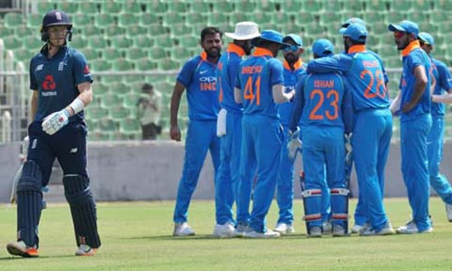 ഇന്ത്യന് ബൗളര്മാര് മികവ് പുലര്ത്തിയതോടെ 30.5 ഓവറില് 112 റണ്സിന് ഇംഗ്ലണ്ട് ലയണ്സ് ഓള്ഔട്ടായി. 60 റണ്സ് വിജയത്തോടെ ഇന്ത്യ പരമ്പരയും ഉറപ്പിച്ചു. ടോസ് നേടി ബാറ്റിങ്ങിന് ഇറങ്ങിയ ഇന്ത്യന് ടീമിന് ആദ്യപന്തില് തന്നെ തിരിച്ചടി നേരിട്ടു. നേരിട്ട ആദ്യപന്തില് തന്നെ ക്യാപ്റ്റന് രഹാനെ വിക്കറ്റിന് മുന്നില് കുടുങ്ങി. തുടര്ന്ന് വിക്കറ്റുകള് തുടര്ച്ചയായി വീണെങ്കിലും ഇഷാന് കിഷനും ചഹറും നടത്തിയ ചെറുത്തുനില്പ്പാണ് ഇന്ത്യയെ നാണക്കേടില് നിന്നും കരകയറ്റിയത്. ഇഷാന് കിഷന് 30 റണ്സും ചഹര് 39 റണ്സും നേടി. ഓള്റൗണ്ടര് ക്രുനാല് പാണ്ഡ്യ 21 റണ്സുമായി ഇരുവര്ക്കും പിന്തുണ നല്കി.