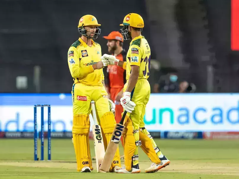 57 പന്തിലാണ് ഋതുരാജ് 99 റണ്സെടുത്ത് പുറത്തായത്. നടരാജനാണ് താരത്തെ പുറത്താക്കിയത്. 55 പന്തിലാണ് കോണ്വെ 85 റണ്സെടുത്ത് പുറത്താവാതെ നിന്നത്.നടരാജന് എസ്ആര്എച്ചിനായി രണ്ട് വിക്കറ്റെടുത്തു. ഹൈദരാബാദിന്റെ സൂപ്പര് താരം ഉമ്രാന് മാലിഖിന് ഇന്ന് ഒരു വിക്കറ്റ് നേടാനായില്ല. താരം നാലോവറില് 48 റണ്സാണ് വിട്ടുകൊടുത്തത്.