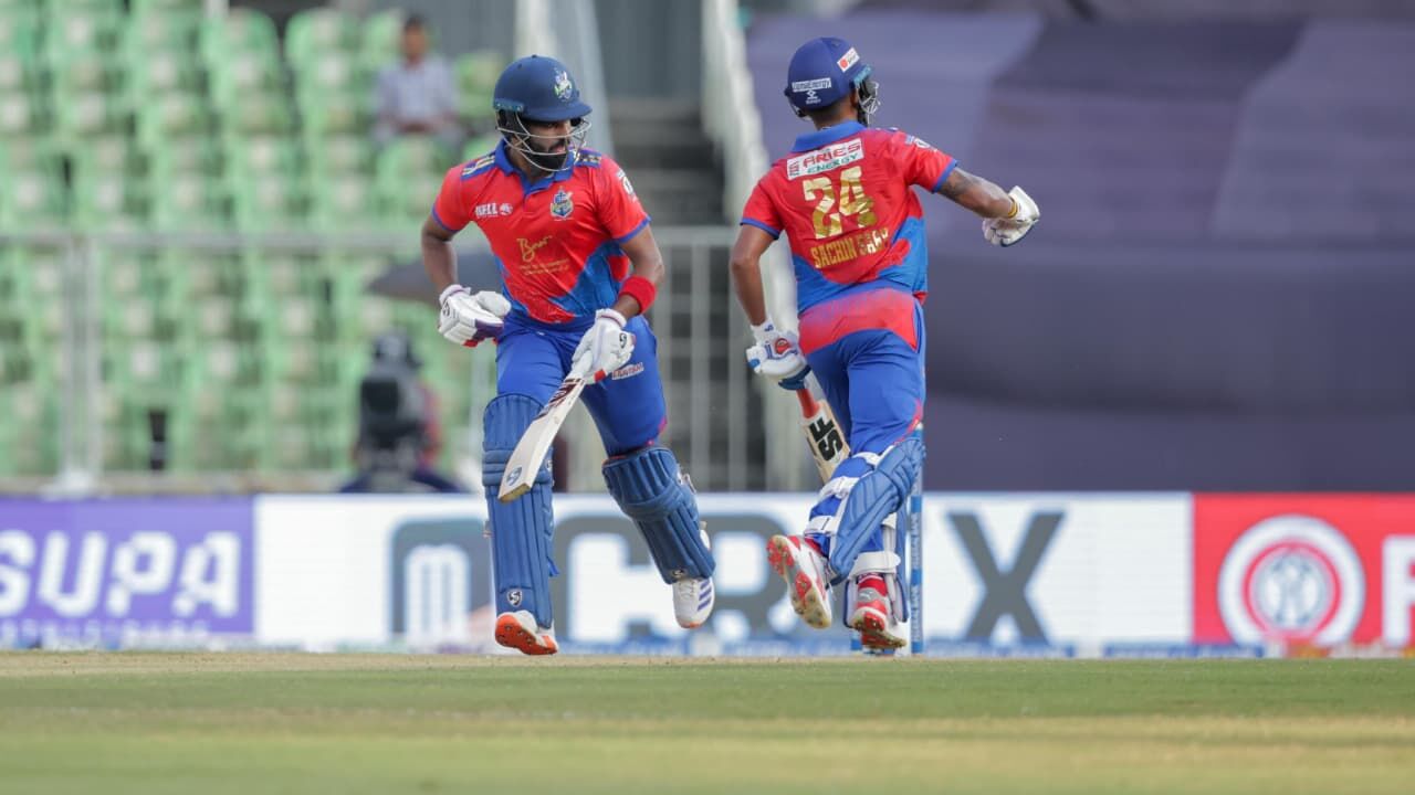 മറുപടി ബാറ്റിങ്ങിന് ഇറങ്ങിയ കൊല്ലത്തിനും ഓപ്പണര്മാര് മികച്ച തുടക്കമാണ് നല്കിയത്.വിഷ്ണു വിനോദും അഭിഷേക് ജെ നായരും ചേര്ന്ന് അഞ്ചാം ഓവറില് തന്നെ സ്കോര് 50 കടത്തി. 33 റണ്സെടുത്ത് വിഷ്ണു വിനോദ് ആസിഫ് സലാമിന്റെ പന്തില് വിഷ്ണുരാജ് പിടിച്ച് മടങ്ങി. തുടര്ന്നെത്തിയ സച്ചിന് ബേബി തകര്ത്തടിച്ച് മുന്നേറിയപ്പോള് മറുവശത്ത് മികച്ച ഷോട്ടുകളുമായി അഭിഷേകും നിലയുറപ്പിച്ചു. ഇരുവരും ചേര്ന്നുള്ള 74 റണ്സിന്റെ രണ്ടാം വിക്കറ്റ് കൂട്ടുകെട്ടായിരുന്നു കൊല്ലത്തിന്റെ വിജയത്തില് നിര്ണ്ണായകമായത്. അര്ദ്ധസെഞ്ച്വറിക്ക് നാല് റണ്സകലെ സച്ചിന് ബേബി മടങ്ങി. 25 പന്തുകളില് നാല് ഫോറും മൂന്ന് സിക്സുമടക്കമായിരുന്നു സച്ചിന് 46 റണ്സ് നേടിയത്.