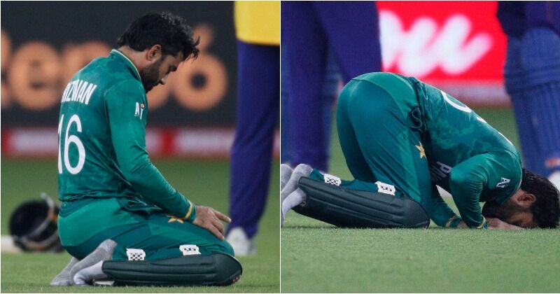 ഡ്രിങ്ക്സ് ബ്രേക്കിനിടെ ഗ്രൗണ്ടില് നമസ്കരിച്ച് പാക് താരം മുഹമ്മദ് റിസ്വാന്