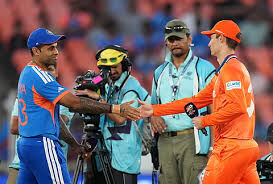 നേരത്തേ ഇന്ത്യന് മുന്നിരയെ നെതര്ലന്ഡ്സ് ബൗളര്മാര് പ്രതിരോധത്തിലാക്കിയതോടെ ശിവം ദുബെയും ഹാര്ദിക് പാണ്ഡ്യയും അവസാന ഓവറുകളില് നടത്തിയ കടന്നാക്രമണമാണ് ഇന്ത്യയെ മികച്ച സ്കോറിലെത്തിച്ചത്. ടോസ് നേടി ബാറ്റിങ്ങിനിറങ്ങിയ ഇന്ത്യ 20 ഓവറില് ആറു വിക്കറ്റ് നഷ്ടത്തില് 193 റണ്സടിച്ചിരുന്നു.