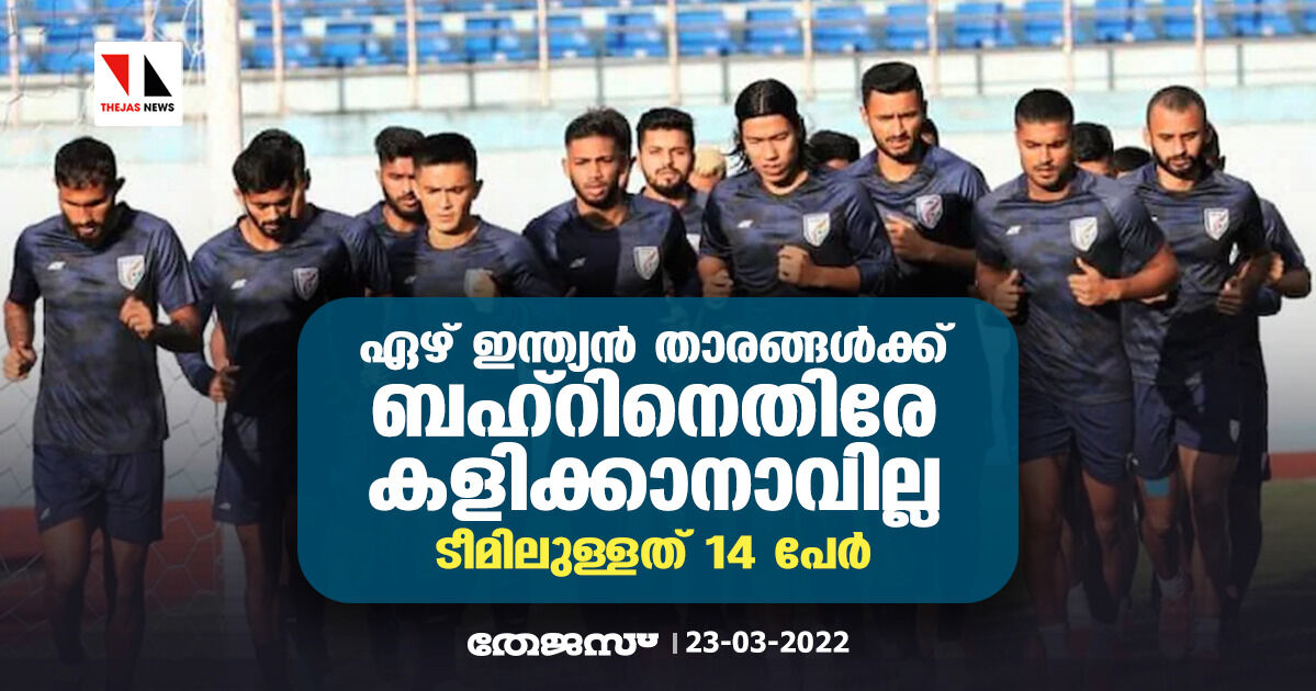 ഏഴ് ഇന്ത്യന് താരങ്ങള്ക്ക് ബഹ്റിനെതിരേ കളിക്കാനാവില്ല; ടീമിലുള്ളത് 14 പേര്