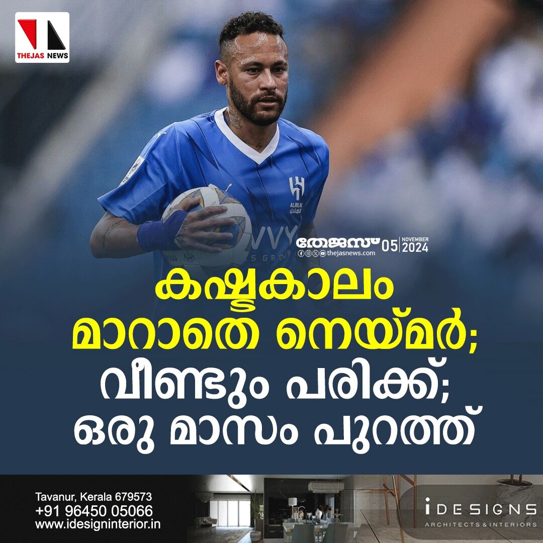 അല് എയ്നെതിരെ നടന്ന അഎഇ ചാമ്പ്യന്സ് ലീഗിലായിരുന്നു നെയ്മര് തിരിച്ചുവന്നത്. അല് ഹിലാലിന് വേണ്ടി തിരിച്ചെത്തിയിട്ടുള്ള രണ്ടാമത്തെ മത്സരത്തിലാണ് നെയ്മര് വീണ്ടും പരിക്കുമായി മടങ്ങിയത്.എസ്റ്റെഗ്ലാല് എഫ്സിക്കെതിരായ മത്സരത്തില് പകരക്കാരനായാണ് നെയ്മര് കളത്തിലിറങ്ങിയതെങ്കിലും മത്സരം തീരുന്നതിന് മുന്പ് മൈതാനം വിടേണ്ടിവരികയായിരുന്നു. വെറും 29 മിനിറ്റു മാത്രമാണ് നെയ്മറിന് കളിക്കാനായത്. മത്സരത്തില് 58-ാം മിനിറ്റില് കളത്തിലെത്തിയ നെയ്മര് 87-ാം മിനിറ്റില് തിരിച്ചുകയറി. ഹാം സ്ട്രിങ് ഇഞ്ചുറിയാണെന്നാണ് പുറത്തുവരുന്ന വിവരങ്ങള്.