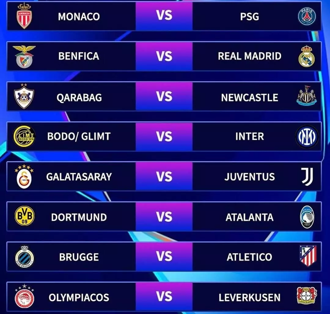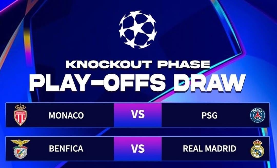 ചാംപ്യന്സ് ലീഗ് നോക്കൗട്ട് പ്ലേ ഓഫ് ഡ്രോ പ്രഖ്യാപിച്ചു; റയല് മാഡ്രിഡും ബെന്ഫിക്കയും വീണ്ടും നേര്ക്കുനേര്