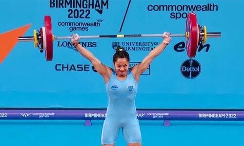 2018ലെ കോമണ്വെല്ത്ത് ഗെയിംസിലും മീരാബായ് ഇതേ വിഭാഗത്തില് സ്വര്ണം നേടിയിരുന്നു. ക്ലീന് ആന്റ് ജെര്ക്കില് 207 കിലോ ഉയര്ത്തിയ മീരാബായിയുടെ പേരില് തന്നെയാണ് ഈ വിഭാഗത്തിലെ ലോക റെക്കോര്ഡും. മറ്റ് മല്സരങ്ങളില് ബാഡ്മിന്റണ് മിക്സഡ് ടീം ഇനത്തില് ഇന്ത്യ, ശ്രീലങ്കയെ തകര്ത്തു (5-0). വനിതാ വിഭാഗം ടേബിള് ടെന്നിസില് ഇന്ത്യ ഗയാനയെ തകര്ത്തു(3-0). സ്ക്വാഷില് സൗരവ് ഘോഷാല് ശ്രീലങ്കയുടെ ഷാമില് വക്കീലിനെ മറികടന്നു(3-0). വനിതകളില് ജോഷ്ന ചിന്നപ്പ ബാര്ബഡോസിന്റെ മെഗാന് ബെസ്റ്റിനെ കീഴടക്കി(3-0).