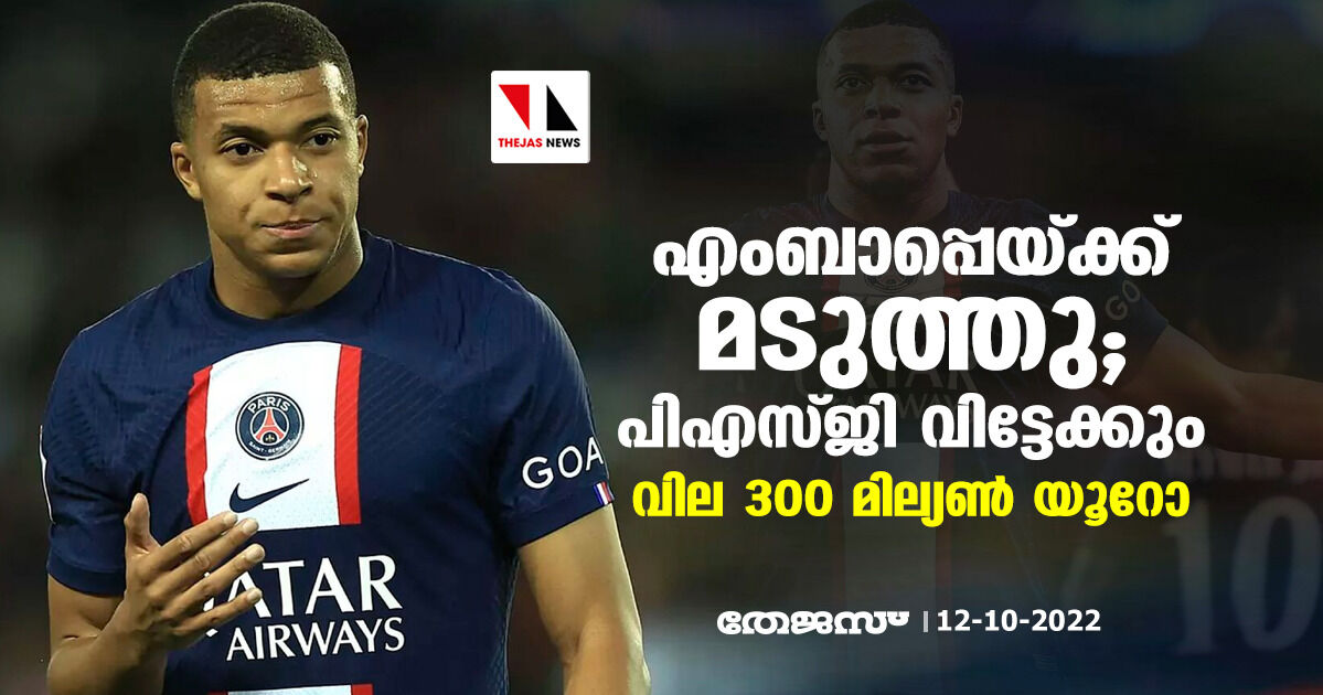 എംബാപ്പെയ്ക്ക് മടുത്തു; പിഎസ്ജി വിട്ടേക്കും; വില 300മില്ല്യണ് യൂറോ