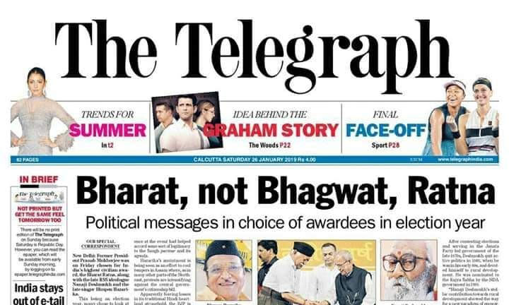 'ഭാരത്, നോട്ട് ഭാഗവത് രത്ന'; ഭാരത് രത്ന പ്രഖ്യാപനത്തെ കടന്നാക്രമിച്ച് 'ദ ടെലഗ്രാഫ്'
