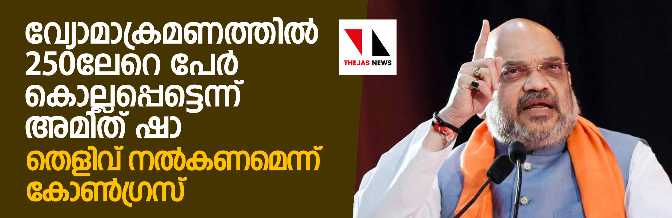 വ്യോമാക്രമണത്തില് 250ലേറെ പേര് കൊല്ലപ്പെട്ടെന്ന് അമിത് ഷാ; തെളിവ് നല്കണമെന്ന് കോണ്ഗ്രസ്