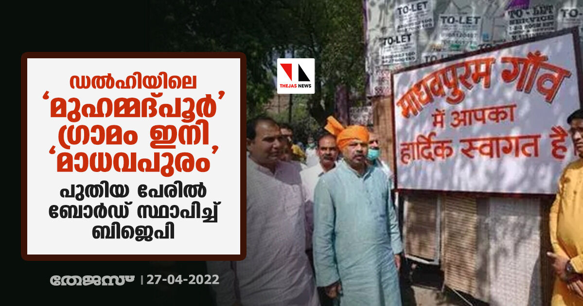 ഡല്ഹിയിലെ 'മുഹമ്മദ്പൂര്' ഗ്രാമം ഇനി 'മാധവപുരം'; പുതിയ പേരില് ബോര്ഡ് സ്ഥാപിച്ച് ബിജെപി