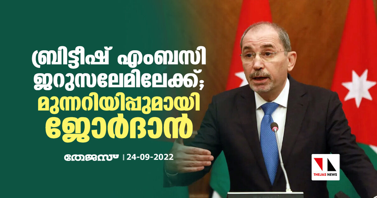 അമ്മാന്: അധിനിവേശ നഗരമായ ജറുസലേമിലേക്ക് ബ്രിട്ടീഷ് എംബസി മാറ്റുന്നതിനെതിരേ മുന്നറിയിപ്പുമായി ജോര്ദാന് വിദേശകാര്യ മന്ത്രി അയ്മാന് സഫാദി. കിഴക്കന് ജറുസലേം ഫലസ്തീന് രാഷ്ട്രത്തിന്റെ തലസ്ഥാനമാണ്. അത്തരത്തിലുള്ള ഏതെങ്കിലും നടപടി സ്വീകരിക്കുന്നതിനെതിരേ തങ്ങള് മുന്നറിയിപ്പ് നല്കിയതായി അയ്മാന് സഫാദി വ്യക്തമാക്കി.