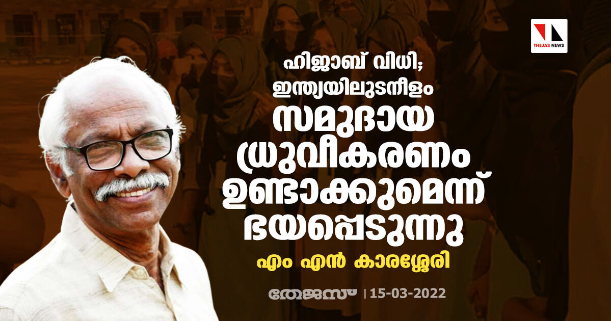 ഹിജാബ് വിധി; ഇന്ത്യയിലുടനീളം സമുദായ ധ്രുവീകരണം ഉണ്ടാക്കുമെന്ന് ഭയപ്പെടുന്നു: എം എൻ കാരശ്ശേരി