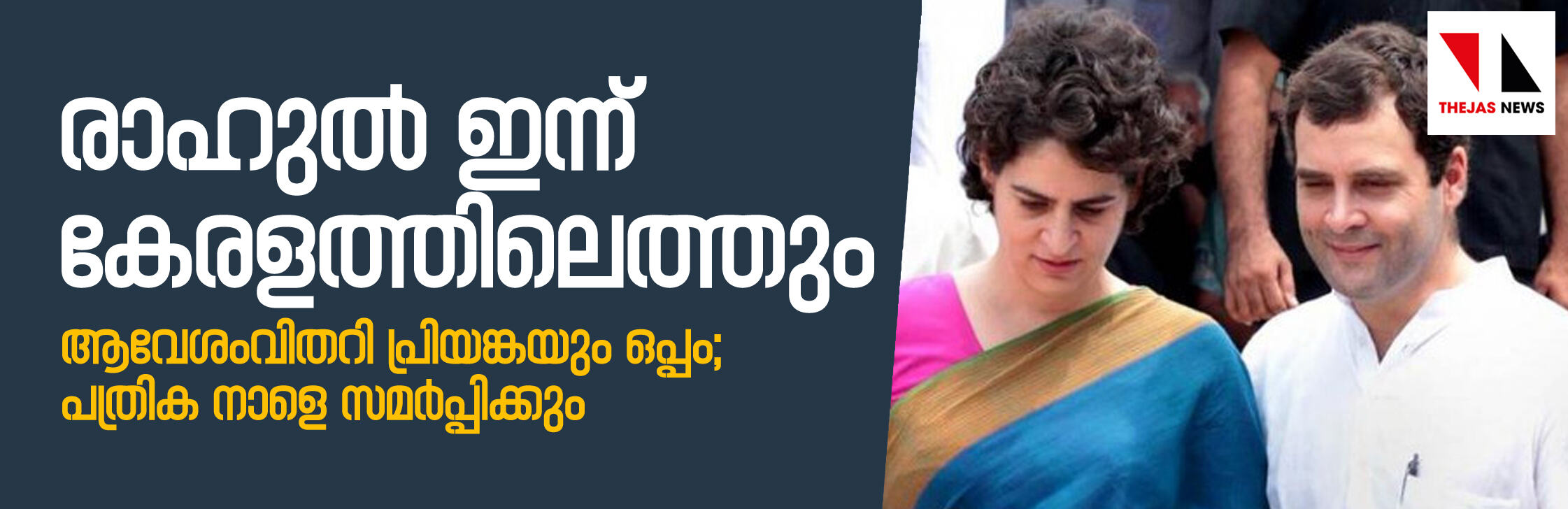 രാഹുല് ഇന്ന് കേരളത്തിലെത്തും; ആവേശംവിതറി പ്രിയങ്കയും ഒപ്പം; പത്രിക നാളെ സമര്പ്പിക്കും
