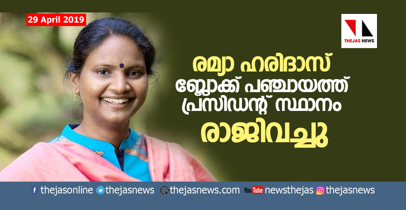 രമ്യാ ഹരിദാസ് ബ്ലോക്ക് പഞ്ചായത്ത് പ്രസിഡന്റ് സ്ഥാനം രാജിവച്ചു