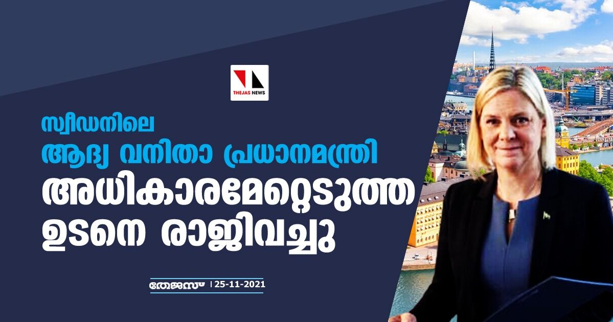 സ്വീഡനിലെ ആദ്യ വനിതാ പ്രധാനമന്ത്രി അധികാരമേറ്റെടുത്ത ഉടനെ രാജിവച്ചു