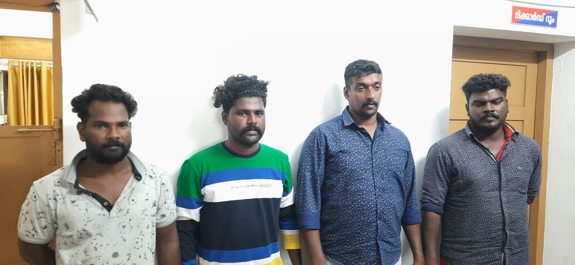 മഞ്ഞപ്ര ചുള്ളി സ്വദേശി കൊളാട്ടുകുടി വീട്ടില് ടോണി (33), വട്ടപ്പറമ്പ് മഴുവഞ്ചേരി വീട്ടില് റിജോ (26), മാള വലിയപറമ്പ് സ്വദേശി പുപ്പന് എന്ന അരുണ് (27), അന്നമനട സ്വദേശി കണ്ണംവേലിത്തറ വീട്ടില് സജേഷ് (37) എന്നിവരാണ് അറസ്റ്റിലായത്.