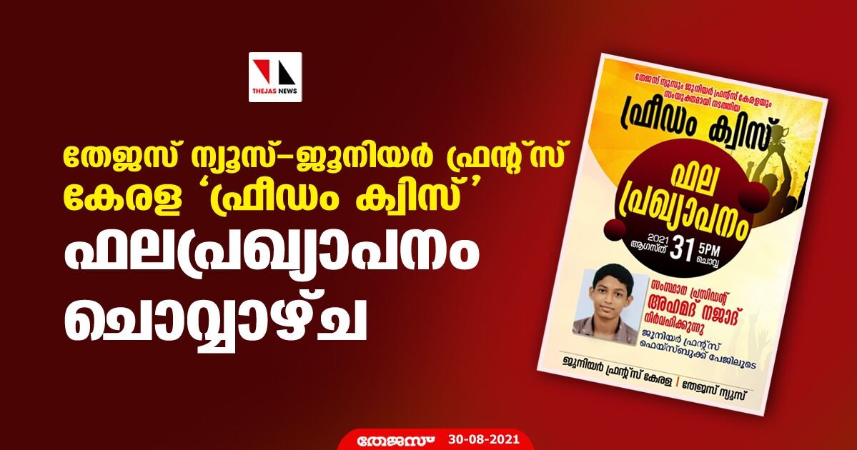 തേജസ് ന്യൂസ്- ജൂനിയര് ഫ്രന്റ്സ് കേരള 'ഫ്രീഡം ക്വിസ്' ഫലപ്രഖ്യാപനം ചൊവ്വാഴ്ച