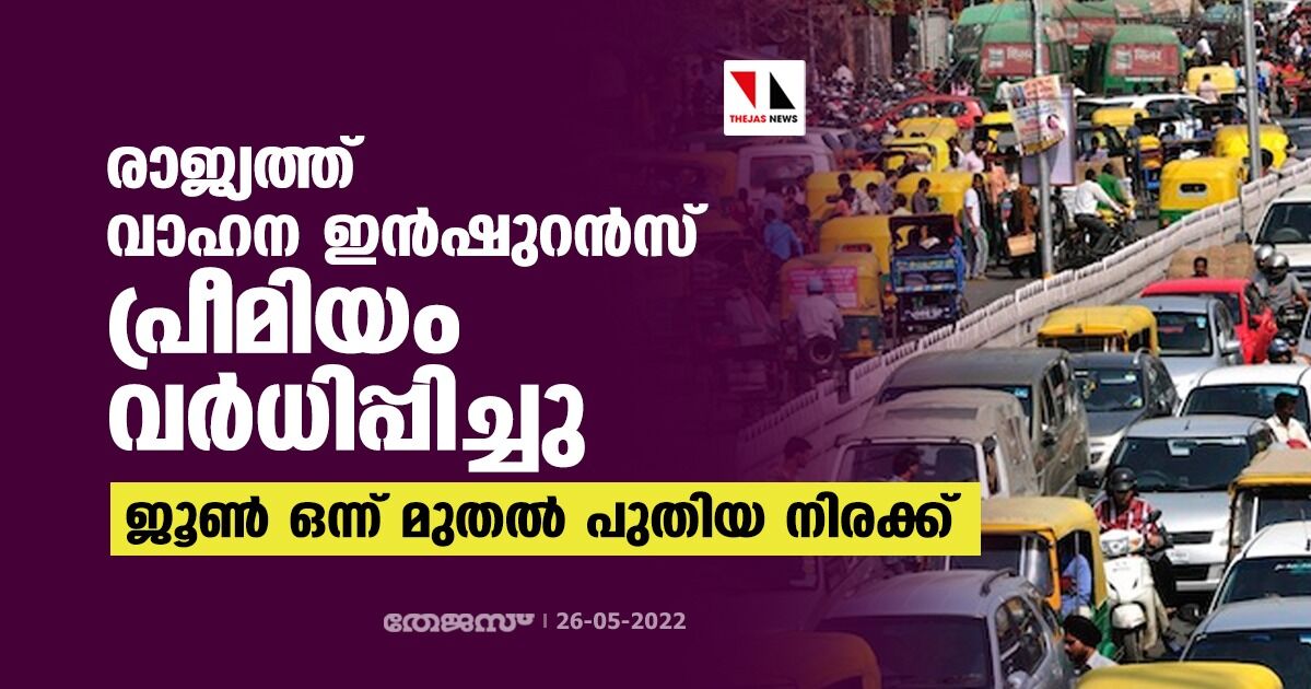 രാജ്യത്ത് വാഹന ഇന്ഷുറന്സ് പ്രീമിയം വര്ധിപ്പിച്ചു; ജൂണ് ഒന്ന് മുതല് പുതിയ നിരക്ക്