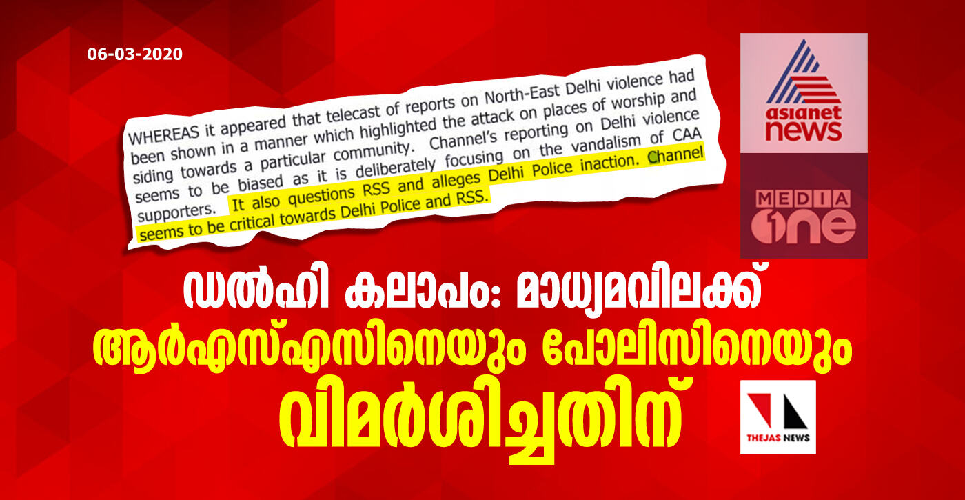 ഡല്ഹി കലാപം: മാധ്യമവിലക്ക് ആര്എസ്എസിനെയും പോലിസിനെയും വിമര്ശിച്ചതിന്