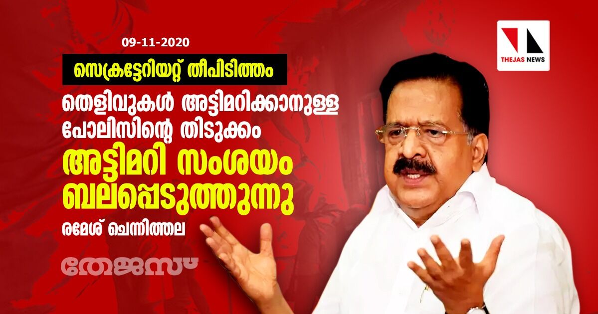 സെക്രട്ടേറിയറ്റ് തീപിടിത്തം: തെളിവുകള് അട്ടിമറിക്കാനുള്ള പോലിസിന്റെ തിടുക്കം അട്ടിമറി സംശയം ബലപ്പെടുത്തുന്നു- രമേശ് ചെന്നിത്തല