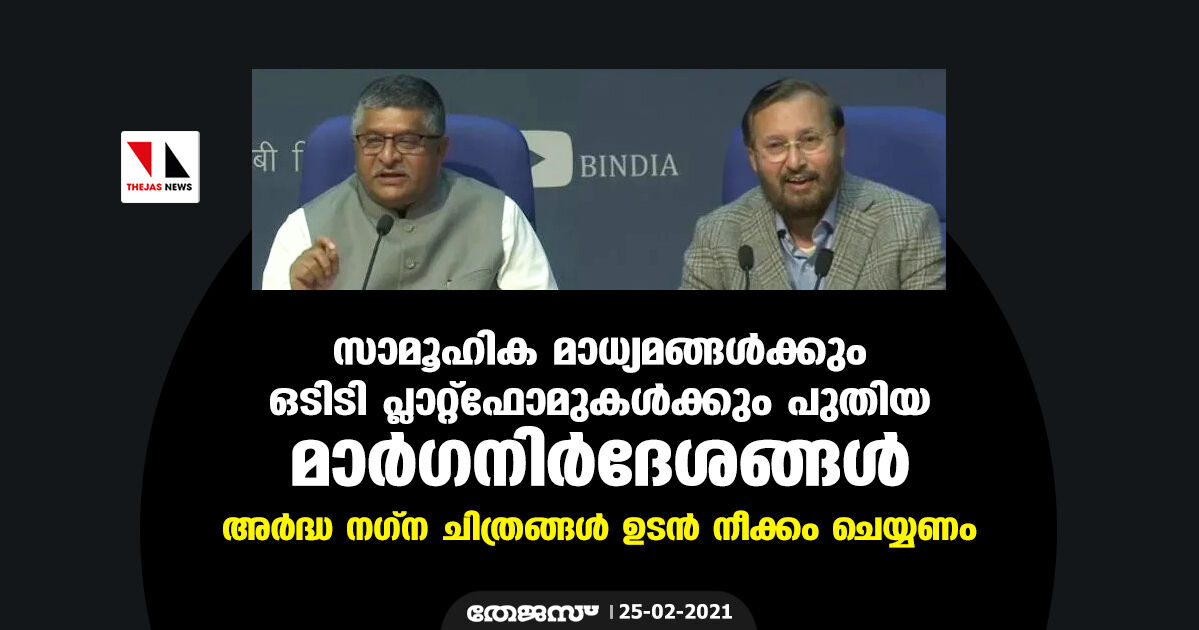 സാമൂഹിക മാധ്യമങ്ങള്ക്കും ഒടിടി പ്ലാറ്റ്ഫോമുകള്ക്കും പുതിയ മാര്ഗനിര്ദേശങ്ങൾ; അര്ദ്ധ നഗ്ന ചിത്രങ്ങള് ഉടന് നീക്കം ചെയ്യണം