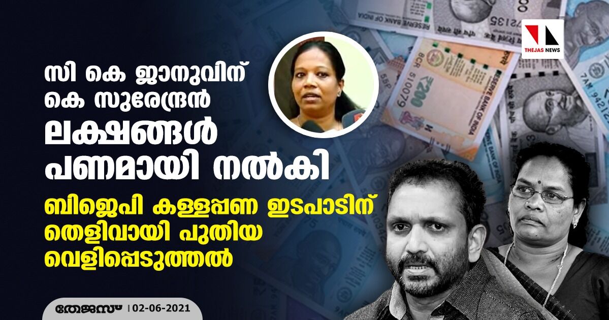 സി കെ ജാനുവിന് കെ സുരേന്ദ്രന് ലക്ഷങ്ങള് പണമായി നല്കി; ബിജെപി കള്ളപ്പണ ഇടപാടിന് തെളിവായി പുതിയ വെളിപ്പെടുത്തല്