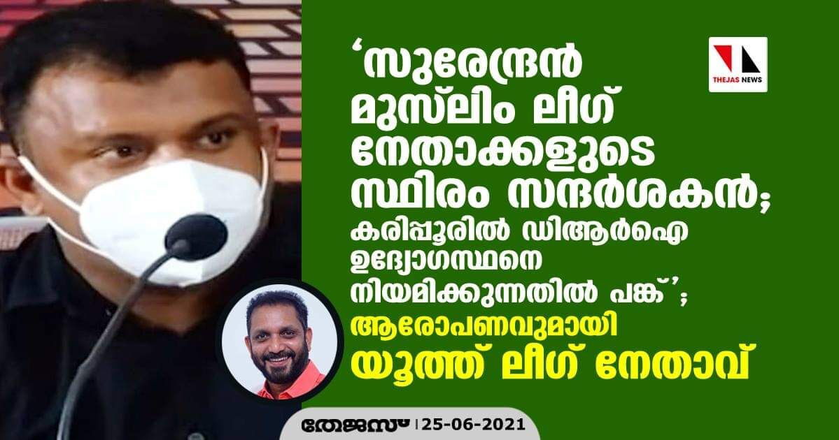 'സുരേന്ദ്രന് മുസ്ലിം ലീഗ് നേതാക്കളുടെ സ്ഥിരം സന്ദര്ശകന്; കരിപ്പൂരില് ഡിആര്ഐ ഉദ്യോഗസ്ഥനെ നിയമിക്കുന്നതില് പങ്ക്'; ആരോപണവുമായി യൂത്ത് ലീഗ് നേതാവ്