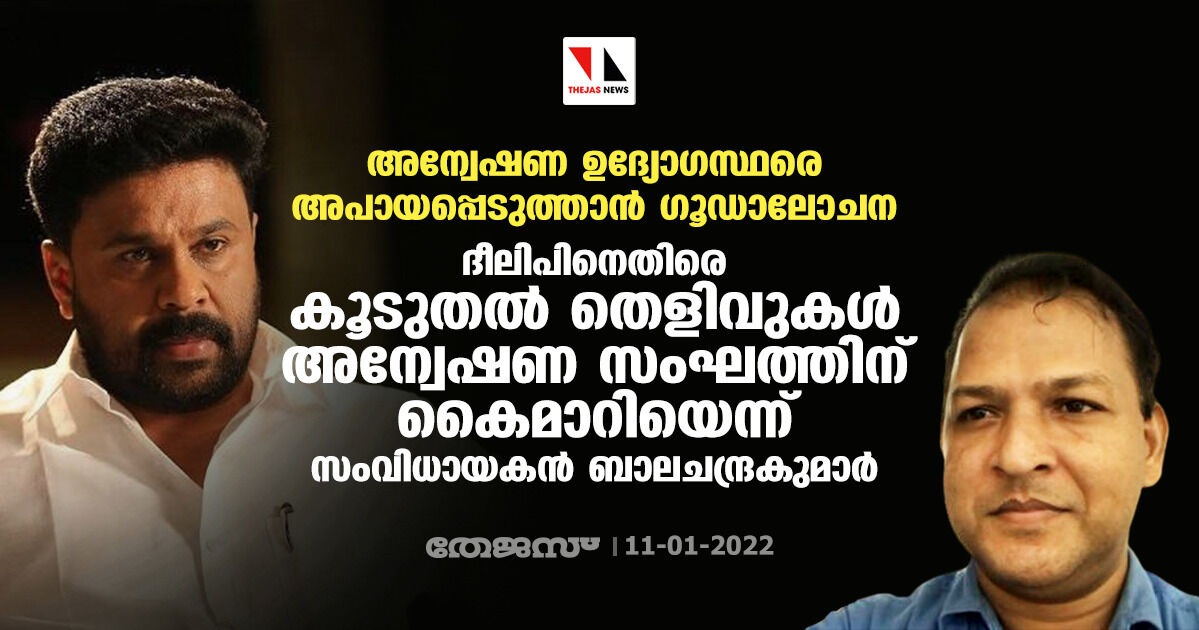 അന്വേഷണ ഉദ്യോഗസ്ഥരെ അപായപ്പെടുത്താന് ഗൂഡാലോചന: ദിലിപിനെതിരെ കൂടുതല് തെളിവുകള് അന്വേഷണ സംഘത്തിന് കൈമാറിയെന്ന് സംവിധായകന് ബാലചന്ദ്രകുമാര്