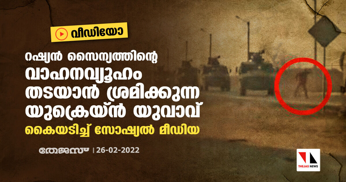 റഷ്യന് സൈന്യത്തിന്റെ വാഹനവ്യൂഹം തടയാന് ശ്രമിക്കുന്ന യുക്രെയ്ന് യുവാവ്; കൈയടിച്ച് സോഷ്യല് മീഡിയ (വീഡിയോ)