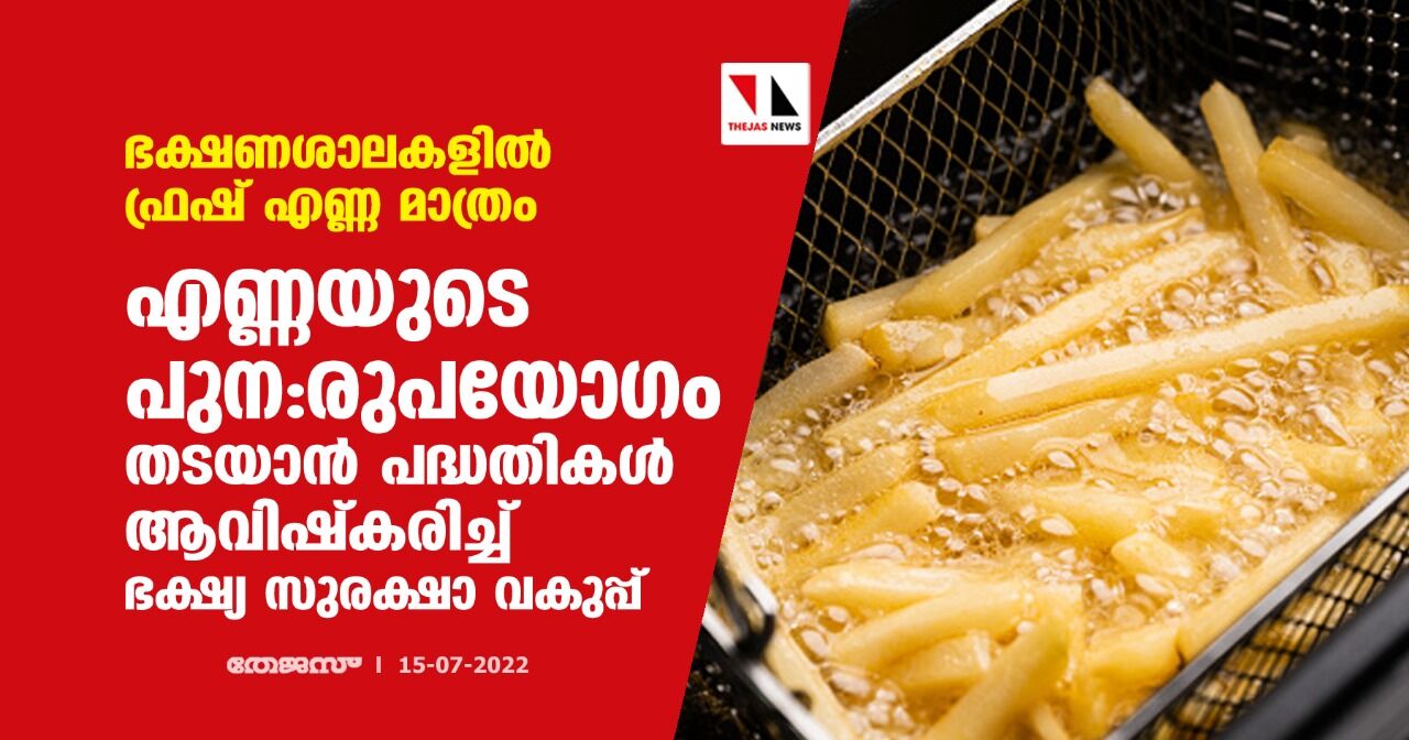 ഭക്ഷണശാലകളില് ഫ്രഷ് എണ്ണ മാത്രം; എണ്ണയുടെ പുന:രുപയോഗം തടയാന് പദ്ധതികള് ആവിഷ്കരിച്ച് ഭക്ഷ്യ സുരക്ഷാ വകുപ്പ്