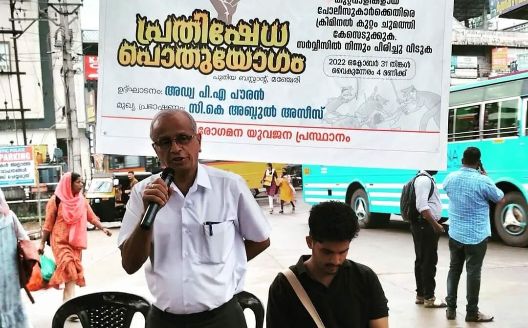 മലപ്പുറം: കേരളത്തിൽ വർധിച്ചുവരുന്ന പോലിസ് അതിക്രമത്തിനെതിരേ പുരോഗമന യുവജന പ്രസ്ഥാനം സംഘടിപ്പിച്ച പ്രതിഷേധ സംഗമം ഉദ്ഘാടനം ചെയ്തതിന് പൗരാവകാശ പ്രവർത്തകനും അഭിഭാഷകനുമായ അഡ്വ. പി എ പൗരനെതിരേ കലാപാഹ്വാനത്തിന് കേസെടുത്ത് കേരള പോലിസ്. തിങ്കളാഴ്ച്ച വൈകീട്ട് മലപ്പുറം മഞ്ചേരിയിലാണ് പ്രതിഷേധ സംഗമം നടന്നത്.