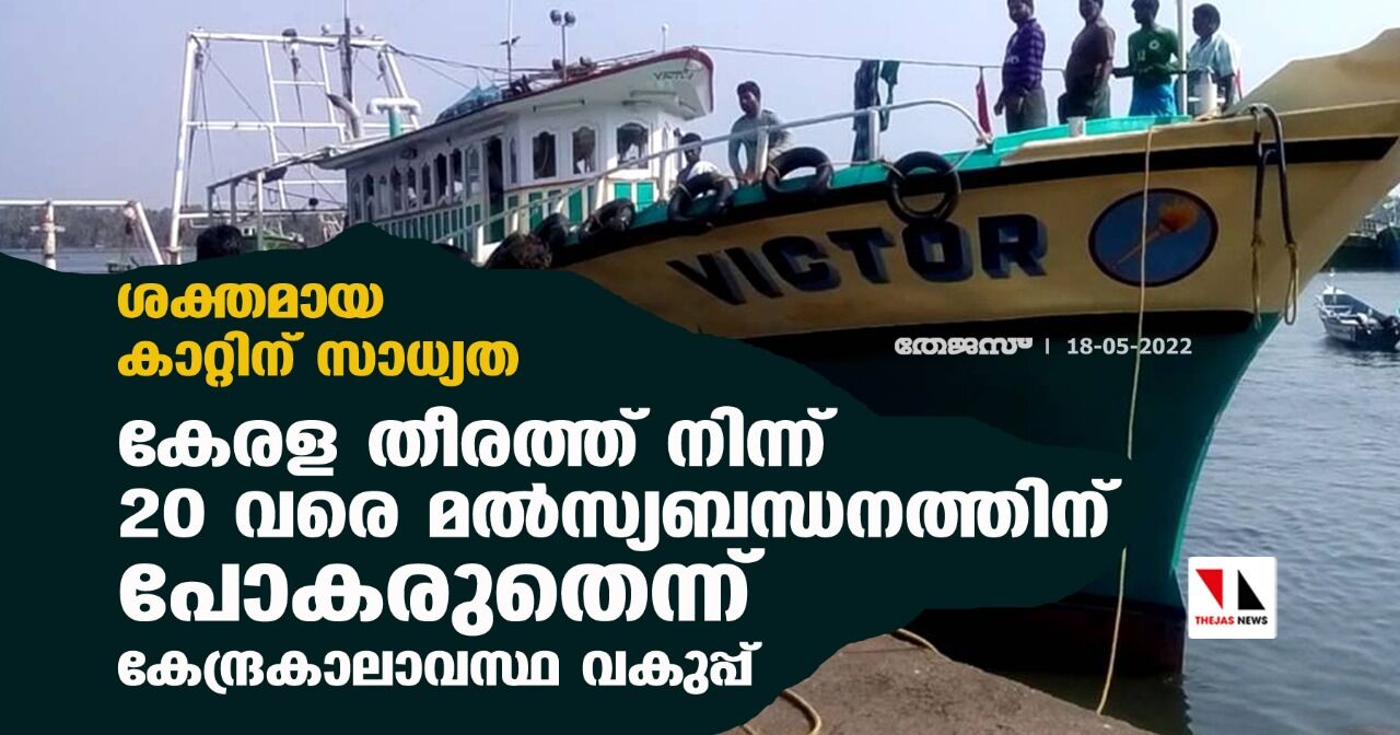 ശക്തമായ കാറ്റിന് സാധ്യത; കേരള തീരത്ത് നിന്ന് 20 വരെ മല്സ്യബന്ധനത്തിന് പോകരുതെന്ന് കേന്ദ്രകാലാവസ്ഥ വകുപ്പ്