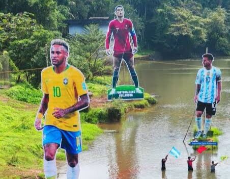 പുള്ളാവൂർ ചെറുപുഴയിൽ അർജന്റീന ആരാധകർ മെസ്സിയുടെ കട്ടൗട്ട് സ്ഥാപിച്ചതോടെ ബ്രസീൽ ആരാധകർ നെയ്മറിന്റെ അതിനേക്കാൾ വലിയ കട്ടൗട്ട് സ്ഥാപിക്കുകയായിരുന്നു. ഇതോടെ പോർച്ചുഗൽ ആരാധകരും കട്ടൗട്ട് സ്ഥാപിച്ചു.