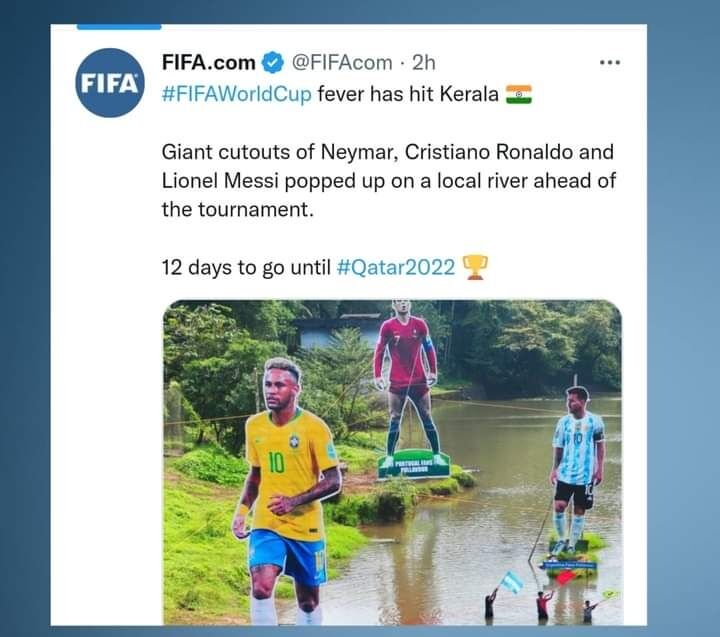 പുള്ളാവൂരിലെ കട്ടൗട്ടുകൾ ട്വിറ്ററിൽ പങ്കുവെച്ച് 'ഫിഫ'യും