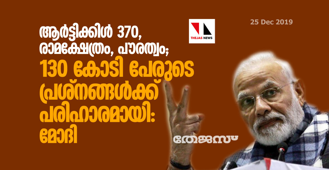 ആര്ട്ടിക്കിള് 370, രാമക്ഷേത്രം, പൗരത്വം;130 കോടിപേരുടെ പ്രശ്നങ്ങൾക്ക് പരിഹാരമായി: മോദി