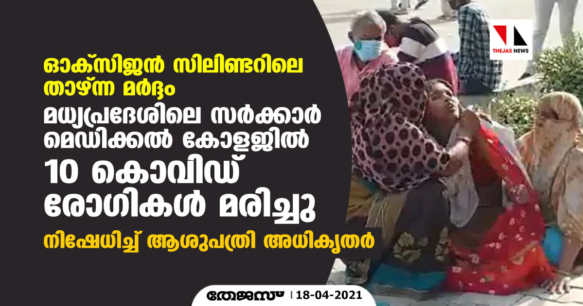 ഓക്സിജന് സിലിണ്ടറിലെ താഴ്ന്ന മര്ദ്ദം; മധ്യപ്രദേശിലെ സര്ക്കാര് മെഡിക്കല് കോളജില് 10 കൊവിഡ് രോഗികള് മരിച്ചു, നിഷേധിച്ച് ആശുപത്രി അധികൃതര്