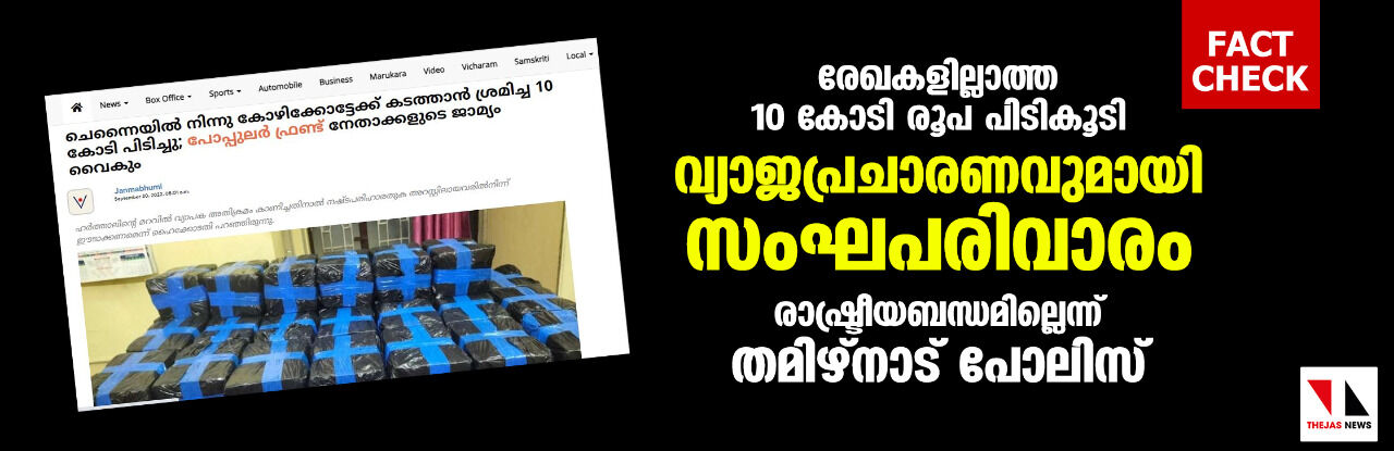 രേഖകളില്ലാത്ത 10 കോടി രൂപ പിടികൂടി; വ്യാജപ്രചാരണവുമായി സംഘപരിവാരം; രാഷ്ട്രീയബന്ധമില്ലെന്ന് തമിഴ്നാട് പോലിസ്