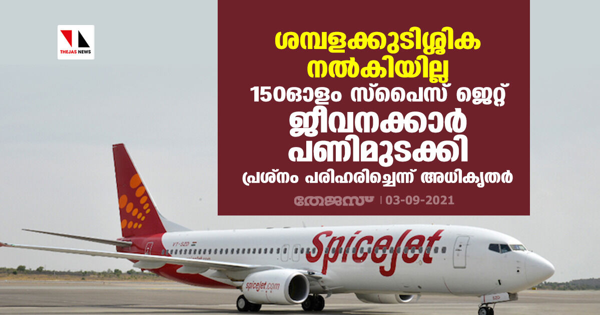 ശമ്പളക്കുടിശ്ശിക നല്കിയില്ല; 150 ഓളം സ്പൈസ് ജെറ്റ് ജീവനക്കാര് പണിമുടക്കി, പ്രശ്നം പരിഹരിച്ചെന്ന് അധികൃതര്
