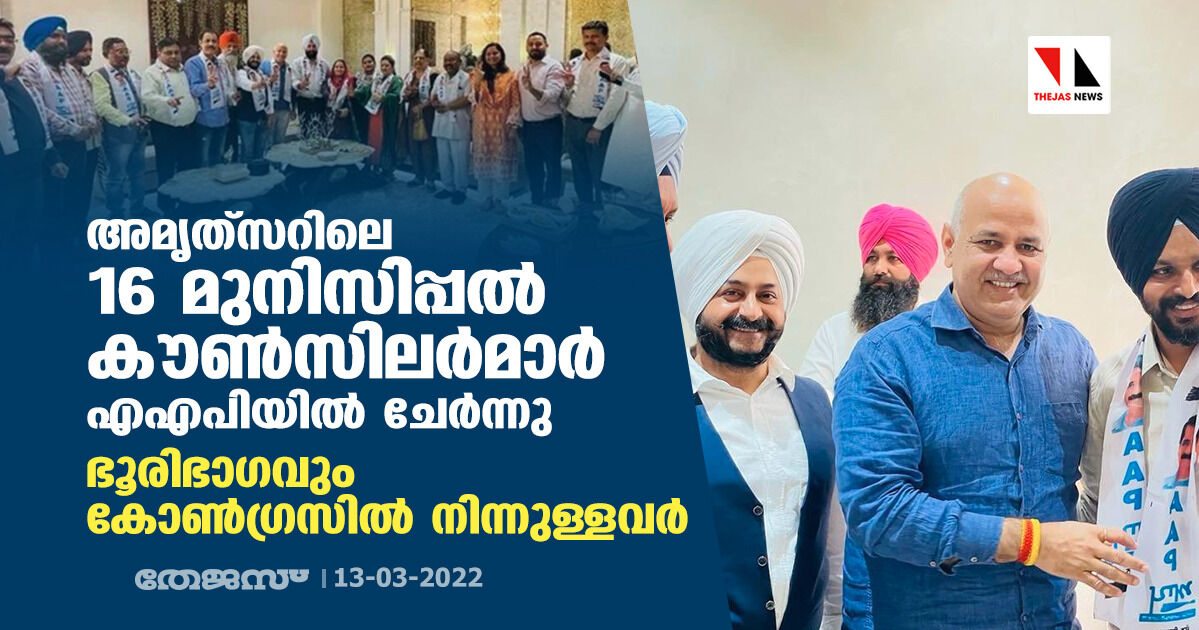 അമൃത്സറിലെ 16 മുനിസിപ്പല് കൗണ്സിലര്മാര് എഎപിയില് ചേര്ന്നു; ഭൂരിഭാഗവും കോണ്ഗ്രസില് നിന്നുള്ളവര്