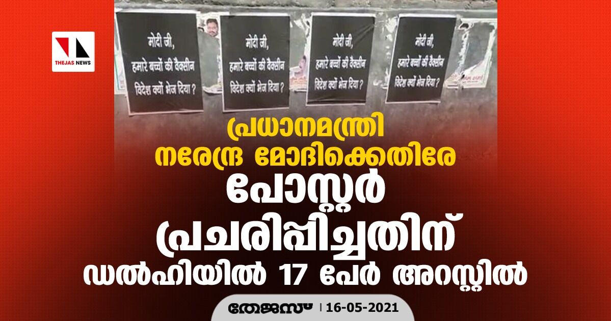 നരേന്ദ്ര മോദിക്കെതിരേ പോസ്റ്റര് പ്രചരിപ്പിച്ചതിന് ഡല്ഹിയില് 17 പേര് അറസ്റ്റിൽ
