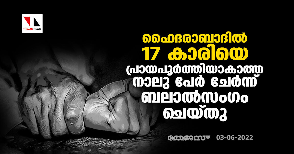 ഹൈദരാബാദില് 17 കാരിയെ പ്രായപൂര്ത്തിയാകാത്ത നാലു പേര് ചേര്ന്ന് ബലാൽസംഗം ചെയ്തു