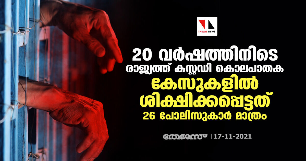 20 വര്ഷത്തിനിടെ രാജ്യത്ത് കസ്റ്റഡി കൊലപാതക കേസുകളിൽ ശിക്ഷിക്കപ്പെട്ടത് 26 പോലിസുകാര് മാത്രം