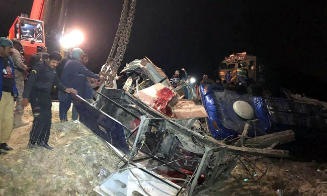 പാകിസ്താനില് തീവണ്ടി ബസ്സിലിടിച്ച് 20 പേര് മരിച്ചു