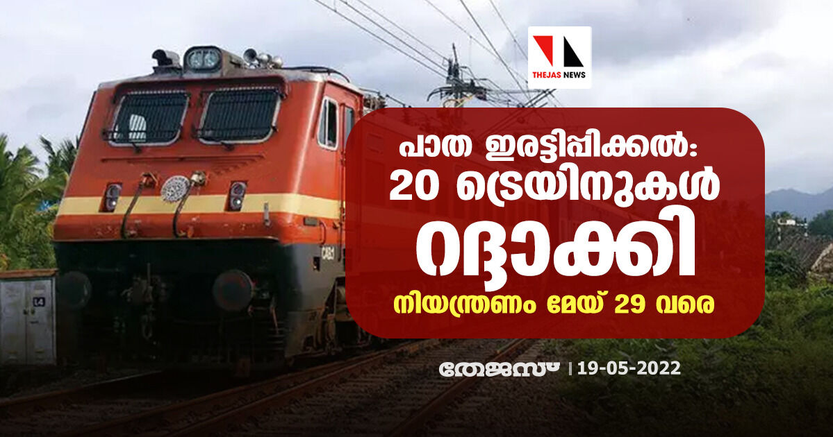 പാത ഇരട്ടിപ്പിക്കല്: 20 ട്രെയിനുകള് റദ്ദാക്കി;നിയന്ത്രണം മേയ് 29 വരെ