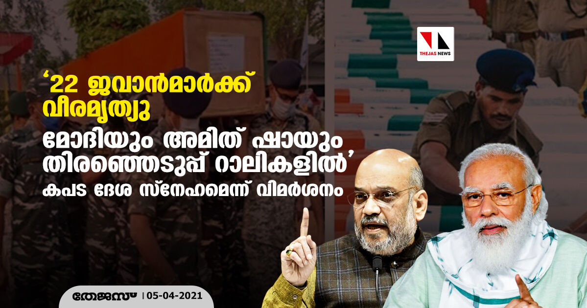 '22 ജവാന്മാര്ക്ക് വീരമൃത്യു; മോദിയും അമിത് ഷായും തിരഞ്ഞെടുപ്പ് റാലികളില്'; കപട ദേശ സ്നേഹമെന്ന് വിമര്ശനം