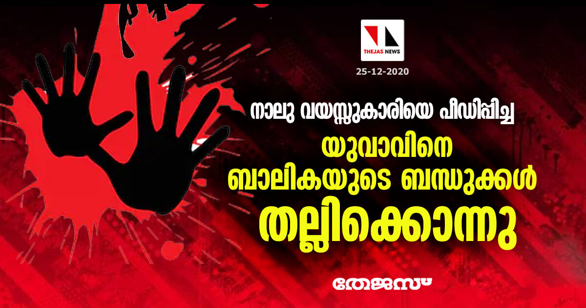 നാലു വയസ്സുകാരിയെ പീഡിപ്പിച്ച യുവാവിനെ ബാലികയുടെ ബന്ധുക്കള് തല്ലിക്കൊന്നു